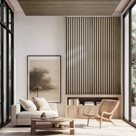 Die 300x40 cm großen Akustikpaneele sind perfekt für Räume mit hohen Decken, in denen sich Schall schnell ausbreitet und der Nachhall reduziert werden muss. Sie lassen sich optimal entlang langer Wandflächen anbringen, ohne den Raum optisch zu überladen. Durch ihr dezentes, elegantes Design können sie entweder harmonisch in das Gesamtbild integriert oder bewusst als Designelement genutzt werden. Ob in Büros, Restaurants, Wohnräumen oder Empfangsbereichen – sie schaffen eine ruhige Atmosphäre und setzen moderne Akzente.